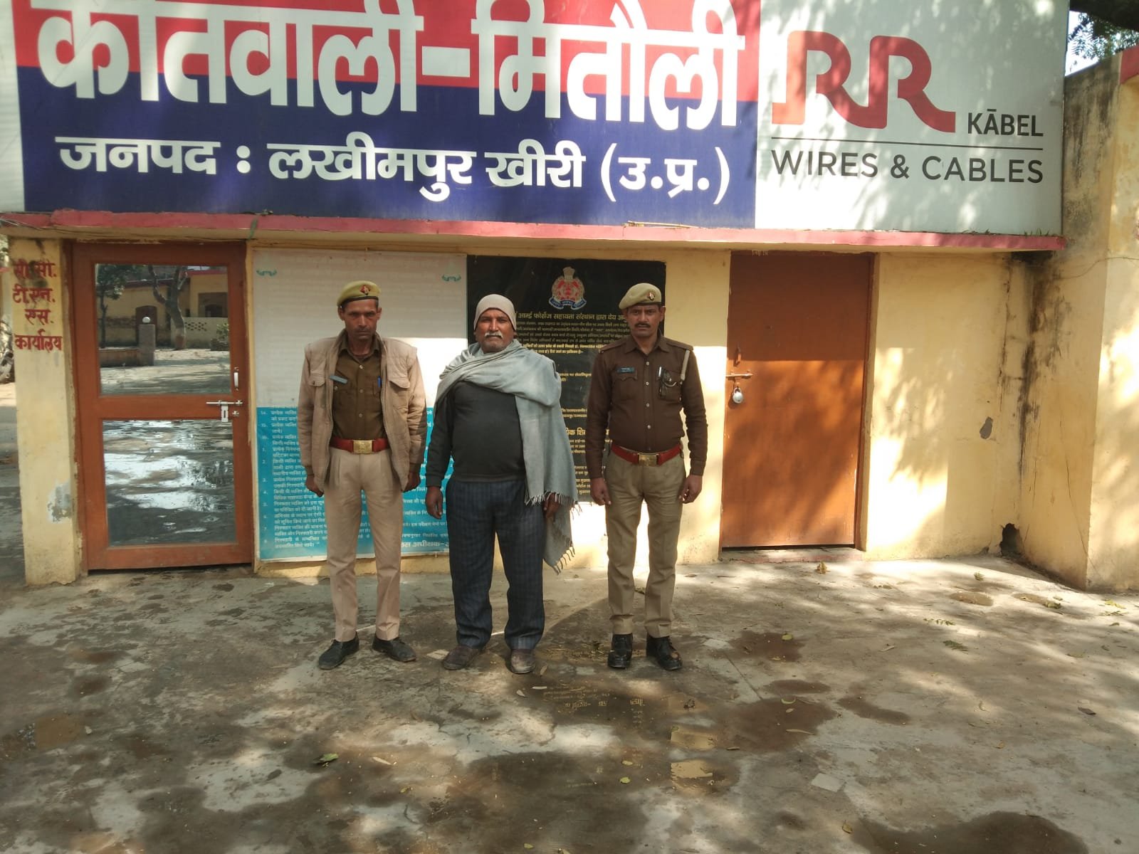 थाना मितौली पुलिस अधीक्षक महोदय जनपद खीरी के द्वारा वांछित वारटियों की गिरफ्तारी हेतु चलाए जा रहे हैं अभियान के अनुपालन में व क्षेत्राधिकारी महोदय मितौली के पर्यवेक्षण में थाना मितौली पुलिस द्वारा मुoअoसo 483/2020 धारा 323/504/427 भादवि व 3(1)द,ध तथा 3(2)v एससी एसटी एक्ट थाना मितौली खीरी संबंधित न्यायालय अपर जिला एवं सत्र न्यायाधीश कोर्ट नo-o2 लखीमपुर खीरी के वारंटी अभियुक्त रामकृष्ण उर्फ भोला सिंह पुत्र स्वo पतिराज सिंह निवासी ग्राम गणेशपुर थाना मितौली खीरी काे आज दिनांक 30,01,2023 को समय करीब 8:30 बजे ग्राम गणेशपुर अभियुक्त के घर से गिरफ्तार किया गया अभियुक्त काे माo न्यायालय के समक्ष प्रस्तुत करने हेतु विधिक कार्रवाई की जा रही है गिरफ्तार करने वाली पुलिस टीम_ उoनिo श्री आदित्य प्रताप सिंह एवं काo राजीव कुमार तथा गिरफ्तार अभियुक्त रामकृष्ण उर्फ भोला सिंह पुत्र स्वo पतिराज सिंह निवासी ग्राम गणेशपुर थाना मितौली खीरी
