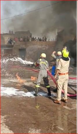 खण्डहर इमारत में लगी भीषण आग । इमारत में रखे से केमिकल के ड्रम । फायर टीम मौके पर । केमिकल से बुझाई जा रही है आग । भारी संख्या में पुलिस बल मौजूद । रकाबगंज थाना क्षेत्र के छीपीटोला पुरानी सब्जी मंडी का मामला ।