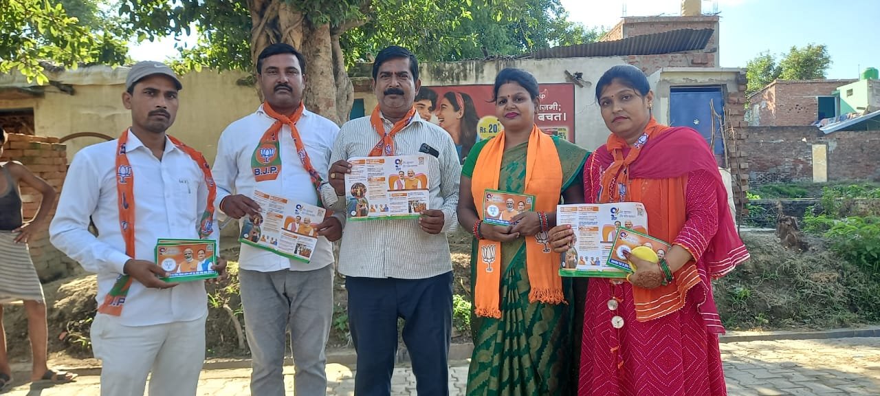 भारतीय जनता पार्टी नेतृत्व में बेहजम मंडल में शक्ति केंद्र देवरी में घर घर जनसंपर्क करते हुए जिला मंत्री उमाराज । संजय दीक्षित मंडल अध्यक्ष बेहजम । जसकरन लाल चौहान मंडल महामंत्री । महिला मोर्चा मंडल महामंत्री अनीता मौर्या को बधाई पत्र देते हुए सरकार की उपलब्धियां गिनाई और सत प्रतिशत मतदान करने की बात कही कहा की योगी सरकार और मोदी सरकार गरीब मजदूरों और किसानों महिलाओं के साथ खड़ी है और आगे भी खड़ी रहेगी