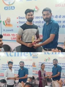 अचीवर्स स्किल्स एंड एजुकेशनल एकेडमी के एमडी अभिषेक शुक्ला ने बताया कि प्रधानमंत्री कौशल विकास की पद्धति पर देश के प्रधानमंत्री नरेंद्र मोदी के सपनों को साकार करने और युवाओं को स्किल एजुकेशन देने के क्षेत्र में अचीवर्स स्किल एंड एजुकेशनल एकेडमी निरंतर काम कर रही है। यहां पर (जीडीए) जनरल ड्यूटी असिस्टेंट के साथ ही ब्यूटीशियन, कंप्यूटर कोर्स, महिलाओं के लिए सिलाई कढ़ाई, मेहंदी सहित एजुकेशन से संबंधित कोर्स कराए जाते हैं। जिनकी फीस बेहद कम रखी गई है। जिससे मध्यमवर्गीय और गरीब परिवार के बच्चे भी अपने हाथों को हुनरमंद बनाकर रोजगार प्राप्त कर सकें। इसके उसका उद्देश्य हर हाथ में हुनर और हर युवा को रोजगार मुहैया कराना है। इसके अंतर्गत जीडीए के पहले बैच का प्रशिक्षण और ऑन जॉब ट्रेनिंग पूरी होने के बाद एक प्रतियोगिता के माध्यम से चयनित 3 अभ्यार्थियों को, जिनमें बल सिंह, बबली राज और विनय पांडे को क्रमशः प्रथम द्वितीय, तृतीय व पुरस्कार दिया गया। इन सभी बच्चों की ऑन जॉब ट्रेनिंग वरदान हॉस्पिटल, मिडलाइफ हॉस्पिटल और स्पंदन नर्सिंग होम में कराई गई है। उन्होंने इन अस्पतालों के सहयोग के लिए उन्हें धन्यवाद भी ज्ञापित किया।