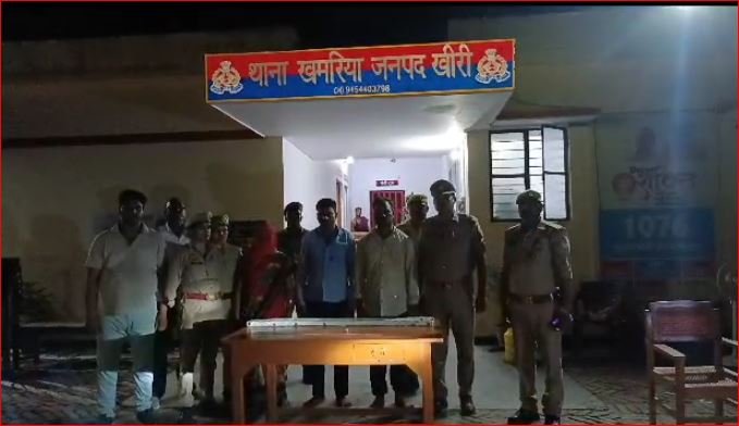 पुलिस अधीक्षक महोदय खीरी, श्री गणेश प्रसाद साहा के निर्देशन व अपर पुलिस अधीक्षक महोदय के निकट पर्यवेक्षण में संपूर्ण जनपद में अपराध की रोकथाम व वांछित अभियुक्तों की गिरफ्तारी हेतु चलाए जा रहे अभियान के अंतर्गत थाना खमरिया पुलिस टीम द्वारा दिनांक 27.07.2023 को समय करीब 18.15 बजे थाना स्थानीय पर पंजीकृत मु0अ0सं0 0123/2023 धारा 302/34 भादवि से सम्बन्धित वांछित अभियुक्तगण 1.रामजी वर्मा पुत्र शिव कुमार निवासी खमरिया पंडित थाना खमरिया जिला खीरी उम्र करीब 38 वर्ष 2. लवकुश शुक्ला पुत्र राम नरेश शुक्ला निवासी ग्राम रतौली थाना लहरपुर जिला सीतापुर उम्र करीब 41 वर्ष 3. श्रीमती साधना पुत्री शिव कुमार वर्मा पत्नी लवकुश शुक्ला निवासी खमरिया पंडित थाना खमरिया जिला खीरी हाल पता रतौली थाना लहरपुर जिला सीतापुर उम्र 40 वर्ष को गिरफ्तार कर अग्रिम कार्यवाही हेतु माननीय न्यायालय के समक्ष प्रस्तुत किया जा रहा है।