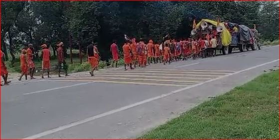 कावड़ियों का जत्था हजारो की संख्या मे कावड़ के लिए रवाना हुए