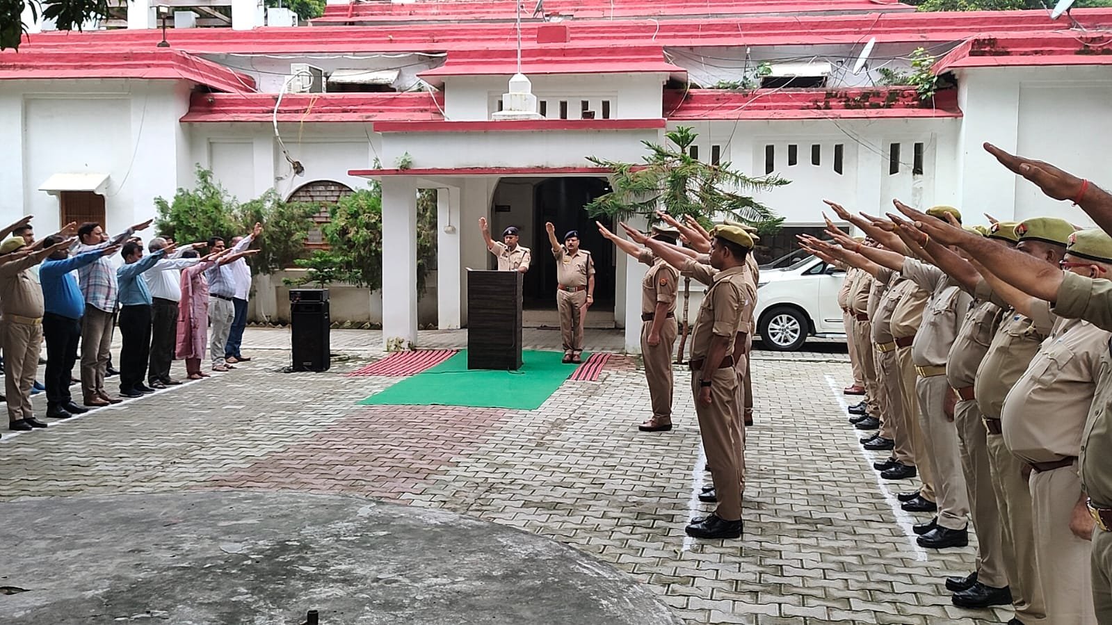 अमर वीर बहादुर स्वतंत्रता सेनानियों के सम्मान में आयोजित ‘मेरी माटी मेरा देश’ व ‘हर घर तिरंगा’ अभियान का आयोजन संपूर्ण देश में उत्सवी ढंग से दिनांक 09 अगस्त से लेकर 30 अगस्त तक किया जाएगा। इसी क्रम में आज दिनांक 09.08.2023 को पुलिस अधीक्षक महोदय खीरी, श्री गणेश प्रसाद साहा द्वारा पुलिस ऑफिस कार्यालय में तैनात समस्त पुलिस अधिकारियों व कर्मचारियों को अमृत काल के पंचप्रण की शपथ दिलाई गई।
