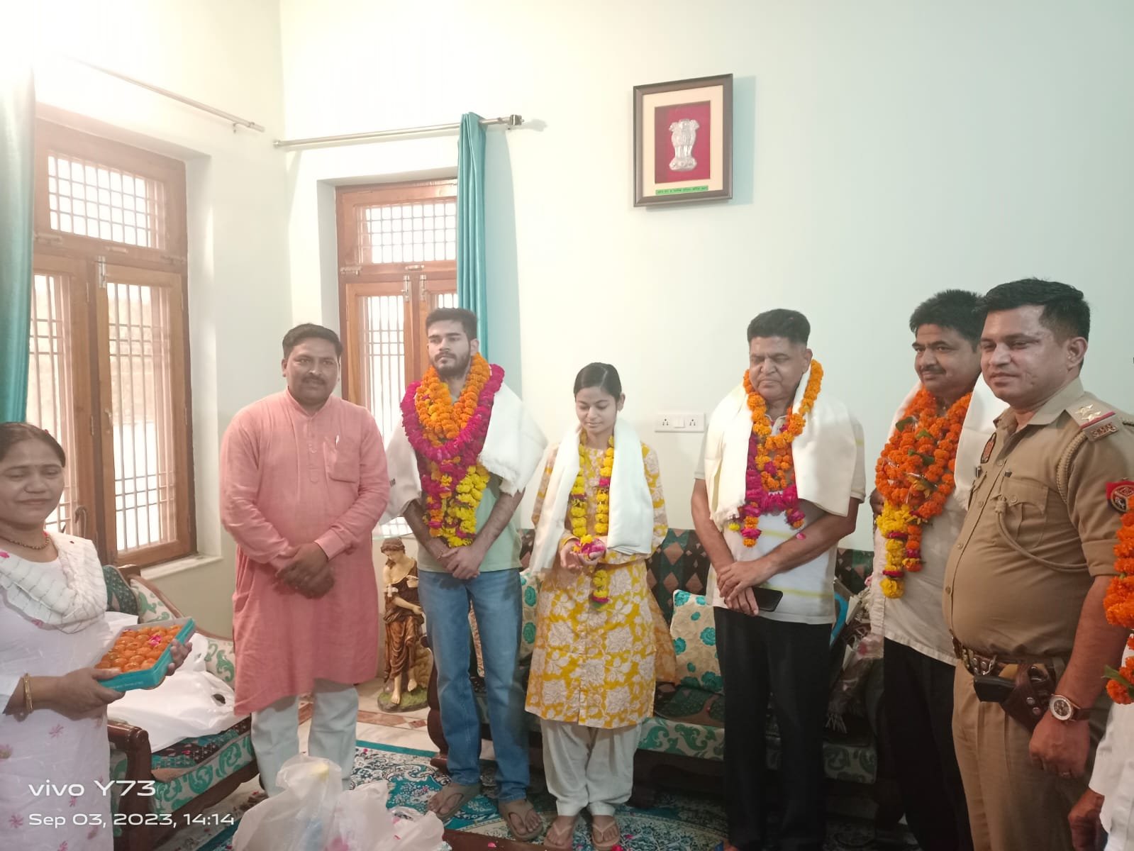 खंदौली नगला अर्जुन सुनील कुमार समाजसेवी ने भाई बहन को फूल माला पहनाकर किया स्वागत समाजसेवी ने बताया बहुत खुसी होती हैं जब हमारे जिले हमारे गांव नाम रोशन करे कोई