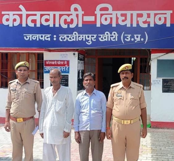 पुलिस अधीक्षक खीरी के निर्देशन में वारण्टी / वाछिंत / संदिग्ध अभियुक्तों की गिरफ्तारी अभियान के तहत क्षेत्राधिकारी निघासन राजेश कुमार के पर्यवेक्षण में तथा प्र0नि0 थाना निघासन श्री सुनील कुमार दुबे के कुशल मार्गदर्शन में निघासन पुलिस बल द्वारा वारण्टी अभियुक्तगण 1. करन सिंह 2. विक्रम सिंह पुत्रगण निवासीगण हरसिंहपुर थाना निघासन खीरी सम्बन्धित क्रिमिनल केश न0 581/98 धारा 304/323 भादवि सम्बन्धित कोर्ट न्यायालय मुख्य न्यायिक दण्डाधिकारी लखीमपुर खीरी वारण्टी अभियुक्तगण करन सिंह व विक्रम सिंह उपरोक्त को इनके गांव से हिरासत पुलिस में लिया गया है। नियमानुसार कार्यवाही कर न्यायिक अभिरक्षा में भेजा जा रहा है।