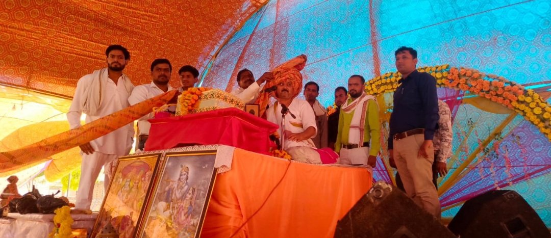 कल शाम को भगवद प्रेमी सुरहरा निवासी अध्यापक एवं युवा नेता नरेंद्र सिंह बघेल ने अपने परिवार और मित्रों के साथ श्री व्यास जी महाराज के सम्मान में 100 फुट की पगड़ी व्यास जी महाराज के सर पर बांधी इतनी लंबी पगड़ी देखकर व्यास महाराज सकते में पड़ गए वहां उपस्थित भक्त आश्चर्य से उस लंबी पगड़ी की ओर देखकर सभी ठाकुर जी महाराज की जय, श्री व्यास जी महाराज की जय, गौरी पुरी बाबा की जय बोलने लगे..