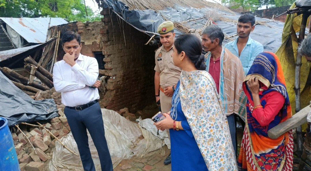 जिलाधिकारी अंजनी कुमार सिंह ने ग्राम जगतपुर में कच्चे भवन के गिरने का मौके पर पहुंचकर किया निरीक्षण