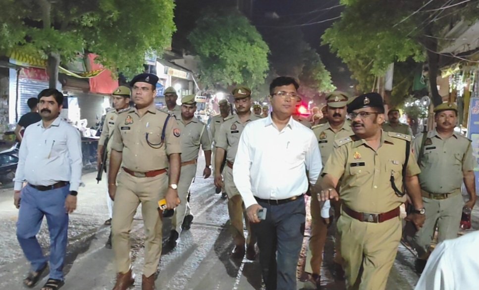 फ्लैग मार्च किशनी चौराहे से मुख़्य बाजार में प्रवेश करते हुए तहसील मुख्यालय तक पैदल किया।