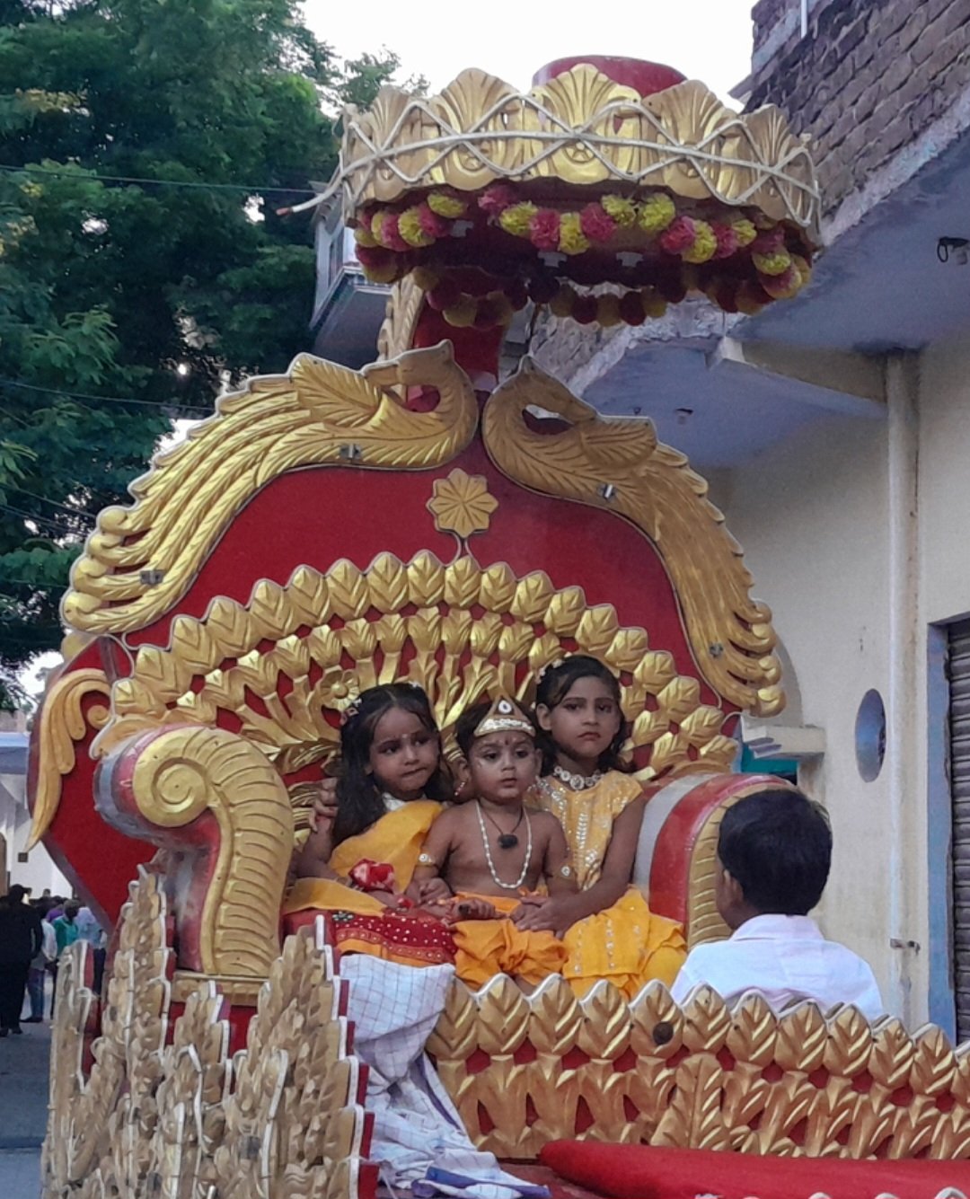 शोभायात्रा के दौरान चल रहीं राधा कृष्ण की झांकी आकृषण का केन्द्र बनीं थी,जिसमें शामिल कलाकार राधा कृष्ण का रुप धारण किए हुए नृत्य करते हुए चल रहे थें।