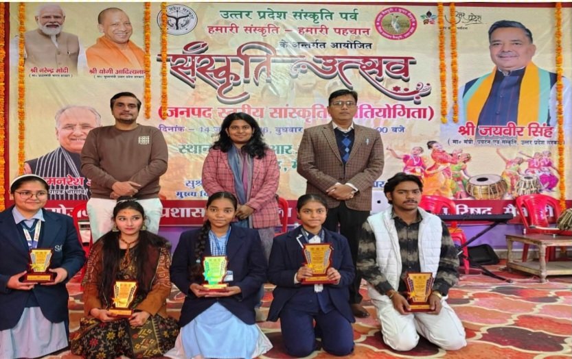 उत्तर प्रदेश संस्कृति उत्सव पर हमारी संस्कृति हमारी पहचान के अंतर्गत्त एस.बी.आर.एल. एकेडमी में आयोजित जनपद स्तरीय संस्कृति उत्सव के अंतर्गत आयोजित एकल गायन,समूह गायन,एकल नृत्य,समूह नृत्य,वादन प्रतियोगिता के विजेताओं को प्रतीक चिन्ह,प्रशस्ति पत्र प्रदान करते हुए जिलाधिकारी अंजनी कुमार सिंह ने कहा कि सांस्कृतिक उत्सव में विभिन्न विधाओं में मोहक प्रस्तुति देने वाले युवाओं में प्रतिभा की कमी नहीं,इन्हें मंच उपलब्ध कराकर इनकी प्रतिभा को निखारने की आवश्यकता है !