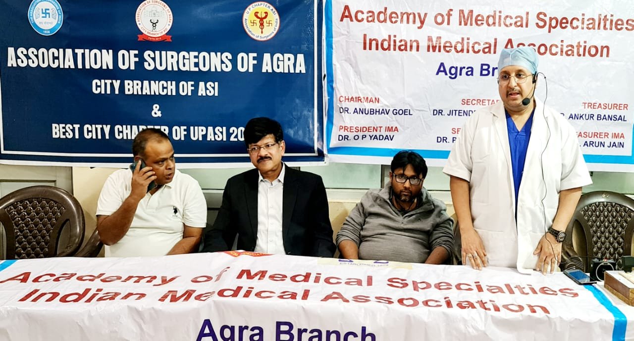 आईएमई एएमएस एवम एसोसिएशन ऑफ सर्जन ऑफ आगरा के चिकित्सकों ने बवासीर पर लोगों को किया जागरूक।