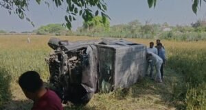 मैनपुरी-करहल बुझिया नहर के समीप खेत में तेज रफ़्तार थार अनियंत्रित होकर खेत मे गिरी,हादसे मे चार लोग घायल ।