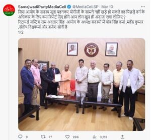 जिस आयोग के सदस्य योगी जी की ऑफिस में जूते पहनकर ना घुस सकें वो रिपोर्ट क्या देंगे-समाजवादी पार्टी मीडिया सेल